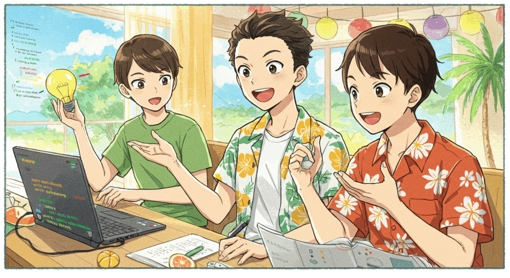 プログラミングの学習をより楽しくするために、友達やクラスメートと一緒に取り組むことも有効です。互いにアイデアや知識を共有することで、新たな視点を得ることができ、モチベーションを高められます。