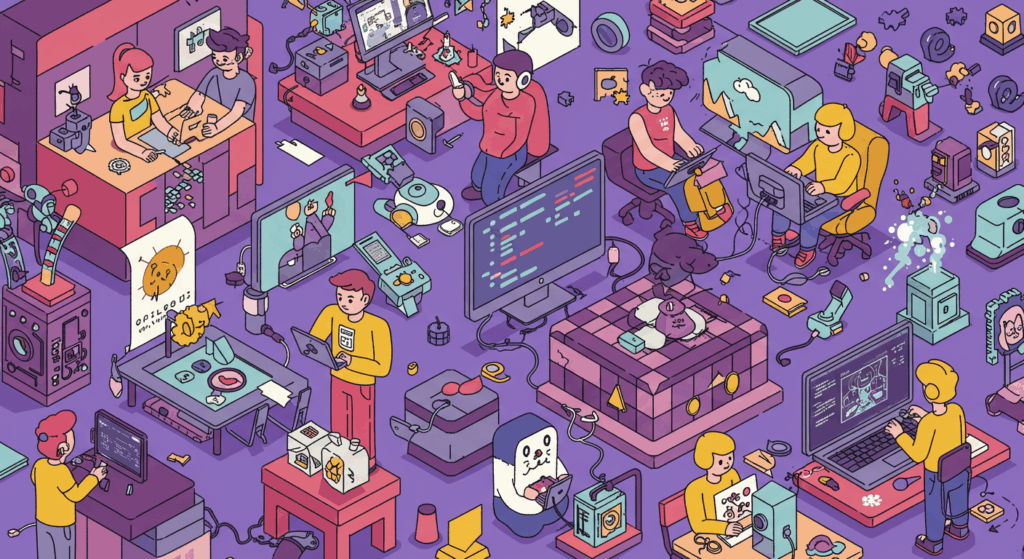 特別コースでは、参加者が自分のオリジナルゲームを設計し、実装することができる環境が整っています。以下の内容を実践します。
