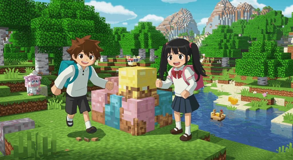 マインクラフトは、サンドボックス型のゲームで、プレイヤーが自由な発想で建築や冒険を楽しむことができます。多様なブロックやアイテムを使用することで、創造性を発揮し、学んだプログラミングスキルを実践できます。特に、建物の設計やプログラムでの自動化が可能になると、ゲームの楽しみが広がります。
