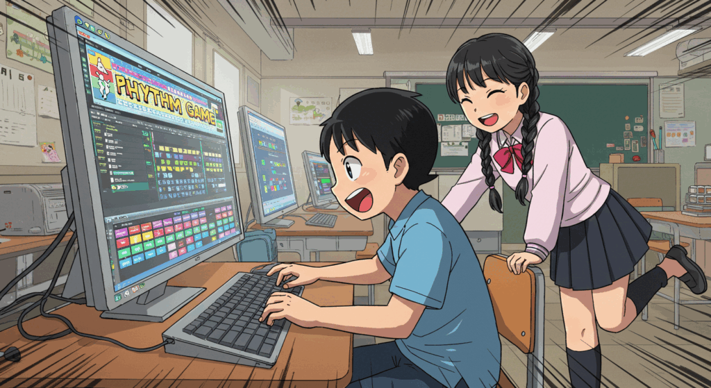 - 音楽・リズムゲーム:リズムに合わせてクリックするゲームで、タイミングを合わせる楽しさがあります。自作の音楽を使ったオリジナルのリズムゲームを作るのも楽しい体験です。