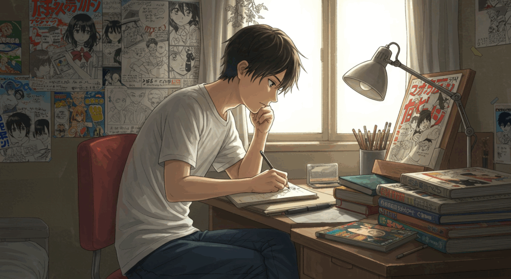 例えば集中線が得意、コマ分け、静止画、色の配分、パソコンでのデータ管理、図形の工夫など、この分野は誰にも負けない!ってものが一つでも多くなれば、それだけ心に余裕が生まれるのだ!